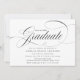 Invitations élégantes de remise de diplômes avec "Graduate" dans un script de calligraphie moderne noir. Personnalisez les invitations à la fête de remise de diplômes en noir et blanc en ajoutant le nom du diplômé, l'année de remise de diplômes, le nom de l'école et les détails de la fête de remise de diplômes. Les invitations branchés de la fête de graduation se retournent pour afficher un motif de treillis blanc avec un arrière - plan noir.