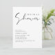 Célébrez dans le style avec cette élégante invitation à la douche nuptiale avec un design noir et blanc intemporel et écriture manuscrite. Cet invitation numérique allie la calligraphie classique à une touche moderne minimaliste, parfaite pour un wedding shower économique. Idéal pour les fêtes boho rustiques ou chic, c’est un moyen abordable mais élégant d’honorer la future mariée.