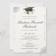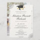 Dotée d'un arrière - plan blanc classique aux accents d'angle fleuris raffinés, cette invitation se targue d'un style de police script sophistiqué et d'une palette de couleurs noir et or de bon goût. Le design comprend une casquette de graduation symbolique et un graphique à défilement, ajoutant une touche de tradition à votre célébration. Personnalisez le texte à la famille et aux amis invitations à la cérémonie et à la célébration, en veillant à ce que la journée spéciale de votre diplômé soit magnifiquement commémorée. Conçu sur du papier texturé de haute qualité, cette invitation est la façon parfaite de marquer cette étape avec style et grâce.