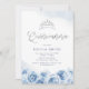 Scénario Quinceañera de parties scintillant en argent chic moderne, design floral en aquarelle bleu glacé tendance, élégant et élégant, grandes invitations de Quinceañera 15e anniversaire.