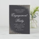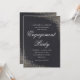 Une élégante invitation à la fête de fiançailles conçue par Stacey Meacham avec des coins confettis en feuille chatoyante et un riche arrière - plan textuel. Tout le texte est entièrement personnalisable vous permettant de changer la police, la couleur et/ou le placement de tous les mots.