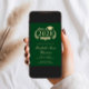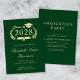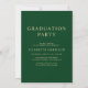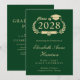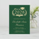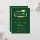 Invitation de remise de diplômes d'un collège vert moderne avec "Classe de" dans une illustration en or clair d'une couronne de laurier, d'un haut casquette et d'un diplôme et le nom du diplômé dans un élégant script d'or. Ajoutez leur école, major, distinctions honorifiques ou plans d'avenir et les détails de la fête de remise de diplômes dans une simple typographie dorée moderne.