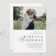 Un faire-part de mariage photo classique noir et blanc avec photo horizontale et élégant script de calligraphie et texte propre éditable. Cliquez sur le bouton Modifier pour customiser cette conception.