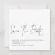 Élégant Script noir blanc QR Mariage date de sauvegarde. Disponible numériquement et imprimé. Un design minimaliste, entièrement personnalisable en noir et blanc avec script informel pour l'en-tête et beaucoup d'espace blanc sur une forme carré pour un style contemporain. Ajoutez votre code QR à votre site Web mariage au verso en modifiant simplement l'exemple d'URL dans votre propre URL de site Web et votre code QR remplacera automatiquement l'exemple de code QR. Vous pouvez modifier le texte et les couleurs arrière - plans si vous le souhaitez via l'option Modifier plus.