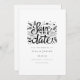 Ce joli script noir et blanc enregistrer la carte d'annonce de date comprend des feuilles et des coeurs de laurier. Ajoutez vos détails de faire-part spéciaux dans un texte classique.