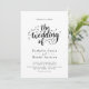 Cette élégante faire-part de mariage en noir et blanc conviendra parfaitement à une mariage moderne. Le design simple présente une élégante calligraphie noire sur un arrière - plan blanc propre. La carte d'invitation comprend les détails du mariage au dos au lieu de payer une carte d'enceinte séparée.