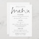 Élégant Script Black White Mariage Menu. Un design typographique élégant en noir et blanc, avec un script stylé pour le Menu d'en-tête. Personnalisez facilement le reste du texte à vos propres détails qui inclut des alternatives pour vos options végétaliennes ou végétariennes. Vous pouvez également modifier les styles et les couleurs de texte ainsi que les couleurs arrière - plans via l'option customiser plus si vous le souhaitez.