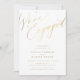 Simple minimaliste chic faux or calligraphie blanc clair nous sommes engagés script engagement invitation de partie.