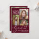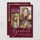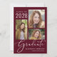 Élégante invitation à la fête de graduation rouge bordeaux avec un collage photo de 3 images et "Graduate" dans un script blanc élégant, et le nom de la grade, l'année de classe et l'école ou l'université en simple typographie blanche moderne. Au verso, ajoutez une photo supplémentaire et les détails de la fête de remise de diplômes.