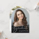 Célébrez les réalisations de votre diplômé grâce à cette élégante faire-part de remise de diplômes en forme d'arc et à l'invitation de la fête. Sa photo préférée remplit le recto de la carte avec "Graduate" superposé sur le dessus dans un script blanc élégant; en dessous, ajouter son nom, l'école et l'année de classe. Au verso, ajoutez une photo supplémentaire et la fête de remise de diplômes ou les détails de la maison ouverte.