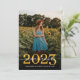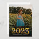 Une invitation audacieuse boho chic moderne de remise de diplômes de photo avec photo et l'année de classe de graduation. Ajoutez vos photos de graduation créative. Convient pour le collège ou le lycée. Style individualiste créatif. Ajoutez une deuxième photo à l'arrière de l'invitation. Couleurs jaune or et bleu. Vous pouvez modifier la couleur du type lorsque vous personnalisez en faisant défiler vers le bas et en sélectionnant "modifier avec l'outil de conception". Sélectionnez simplement l'année dans la palette calques à gauche, puis choisissez les couleurs à droite.