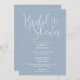 Cette invitation à la douche nuptiale à script bleu poussiéreux peut être personnalisée avec toutes vos informations d'événement spécial et le code QR du registre au verso. Conçu par Thisisnotme©