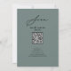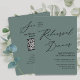 Élégant Script Sage Vert Minimaliste QR Code Reprsal Dîner Carte d'invitation. Célébrez votre journée spéciale avec cette belle et élégante carte de faire-part de mariage pour embellir votre occasion spéciale. Tous les textes sont pré-arrangés pour que vous personnalisiez facilement et rapidement avec vos propres détails. Si vous avez besoin d'une personnalisation ou d'un assortiment d'articles, veuillez nous le faire savoir - nous aimerions vous aider.