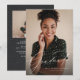 Cette annonce et invitation de remise de diplômes avec deux photos est la façon parfaite de célébrer votre diplômé. Avec un script moderne et élégant "diplômé" en blanc, ce design comprend également un espace pour la personnalisation, y compris le nom, l'école et l'année. Le verso est un gris doux coordonné avec un motif de tirets subtil pour correspondre au soulignement sur le devant et comprend un espace pour le texte d'invitation à la fête de remise de diplômes et une deuxième photo. Cette annonce de remise de diplômes élégante convient bien pour un diplômé du lycée ou un diplômé de l'université. D'autres styles disponibles dans la collection de Lea Delaveris Design.
