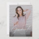 Cette unique faire-part de remise de diplômes photo et l'invitation est la meilleure façon de célébrer votre diplômé. Avec un script moderne et élégant "gradué" en blanc, ce design dispose également de la place pour la personnalisation, y compris le nom, l'école et l'année. Le dos est un gris souple coordonné avec un motif de tiret subtil pour correspondre au soulignement sur le devant et comprend la place pour le texte d'invitation de la partie de graduation. Ce faire-part de diplôme élégant fonctionne bien pour un diplômé du secondaire ou un diplômé de l'université. Autres couleurs et styles disponibles dans la collection.