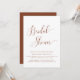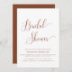 Une invitation branchée élégante à la douche nuptiale en terre cuite. Cette invitation à la douche nuptiale un thème minimal avec un élégant texte de script orange brûlé en terre cuite. Customisez le texte pour créer l'invitation parfaite de douche mariage de automne.