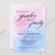 Ce genre révèle l'invitation de la fête avec un script élégant sur un arrière - plan d'aquarelle rose et bleu.