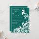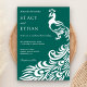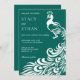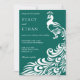 Éblouissez vos invités avec cette élégante invitation de mariage avec un beau paon et une typographie moderne contre un arrière - plan vert mer. Ajoutez simplement les détails de votre événement sur ce modèle facile à utiliser pour en faire une invitation unique.