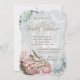 Belle invitation de shower de mariage avec rose champagne, bleu sarcelle et rose, chaussure à talon haut avec perles et ivoire. Cette invitation de shower de mariage élégante et vintage est facilement personnalisable pour votre événement avec le choix de libellé, style de police, etc.