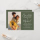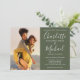 Doté de vos noms spéciaux de photo et de style signature, cet élégant faire-part de mariage vert olive peut être personnalisé avec vos informations en lettres chic. Conçu par Thisisnotme©