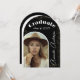 Cette invitation magnifiquement conçue exhale le raffinement et le style, parfait pour obtenir un diplôme d'études secondaires ou collégiales. Présentant un design moderne avec une touche d'élégance, l'invitation présente un cadre photo en arc en noir. La police de script en noir et blanc classique ajoute un attrait intemporel à la conception. Conçu avec l'ajout d'éléments d'or. Invitation vos proches à partager votre réussite avec cette élégante et élégante invitation à la remise de diplômes !