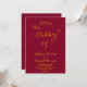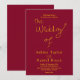 Cet élégant faire-part de mariage bordeaux et doré est parfait pour un mariage moderne. le design simple comprend une élégante calligraphie dorée sur un arrière - plan bordeaux.