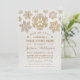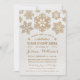 Des flocons de neige à la dentelle dorée brillent avec un arrière - plan blanc glacé en hiver. Idéal pour les fêtes en hiver. Idéal pour les événements officiels, les fiançailles, les anniversaires, les anniversaires, les anniversaires, les cocktails, les fêtes de fin d'année, les départs à la retraite, les mariages, les événements corporatifs, les fêtes de la nouvelle année, les cravates noires, les gala, les collectes de fonds d'entreprise, les événements caritatifs ou tout événement spécial. Illustration originale par pj_design.VEUILLEZ NOTER : Tous les produits sur Zazzle ont des images imprimées à plat - pas de vrais paillettes ou de la parties scintillant.