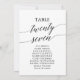 Ces élégantes cartes de table noire numéro 27 sont parfaites pour un mariage simple. Le design neutre présente une carte minimaliste décorée de typographie romantique et fantaisiste. La carte s'imprime à l'avant et à l'arrière (double face).