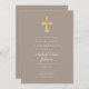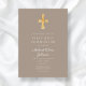 Personnalisé Elegant Taupe Cross Boy First Communion Invitation