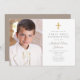 Invitation Elegant Taupe Cross Photo Boy First Communion