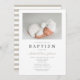 Invitation Élégant Taupe Stripes Boy Baptism Photo