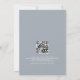 Elégante Toile Bleue Dusty De Jouy Bordure Code QR Mariage. Ce design moderne a une bordure de chinoiserie bleu pâle qui englobe les mots que vous pouvez facilement personnaliser. Ajoutez votre code QR à votre site web mariage à l'arrière afin que vos invités puissent RSVP et voir tous les détails en ligne. Le code sera automatiquement mis à jour lorsque vous changerez l'exemple d'URL vers celui de votre propre site mariage.