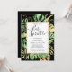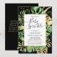 Cette invitation à la douche tropicale moderne à l'arrosage de bébé comprend des palmiers verts et dorés, des feuilles philodendrons et fougères sur un arrière - plan noir. Un cadre doré élégant met en évidence le texte noir. Les plaquettes d'or accentuent ce design botanique exotique et apportent un peu de fantaisie sophistiquée à l'invitation. Le dos présente un poème sucré pour faire connaître aux participants ce qu'est une petite goutte d'eau. Cet invitation d'oasis dans la jungle est parfait pour tous les enfants en plein air, plage ou tropicaux.