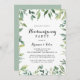 Cette élégante invitation à la fête du feuillage vert tropical est parfaite pour une simple célébration de maison nouvelle. Ce design dessiné à la main présente une aquarelle de beaux feuilles verts.