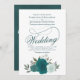 Cette belle faire-part de mariage présente un joli bouquet d'aquarelle peint à la main de roses, de fleurs, d'eucalyptus feuille, et de verdure dans les tons turquoises. turquoise, et aqua. Le design se compose d'un script de calligraphie sophistiqué avec une longue queue bouclée, ce qui le rend à la fois moderne et classique. Une façon élégante, sophistiquée et chic d'invitation vos amis et votre famille à partager dans votre journée spéciale. Le dos de la carte est une couleur bleu-vert marbré profond avec un code QR et de l'espace pour diriger vos invités à votre site Web pour plus d'informations et à RSVP.