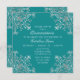 Invitation Elégant Turquoise Argent Orné Floral Quinceañera