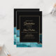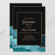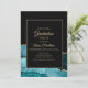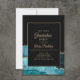 Invitation Élégant Turquoise Marbre noir Or Agate Graduation