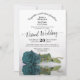Cette belle invitation est destinée aux couples qui ont décidé de mettre leurs mariages en ligne en raison de la pandémie en cours. Il dispose d'un design magnifique avec la calligraphie en dentelle un seul rose turquoise ou turquoise à longue tige réfléchissant dans un bassin d'eau. Merveilleuse façon d'invitation vos amis et votre famille à partager dans votre journée spéciale, même si les circonstances empêchent un rassemblement physique.