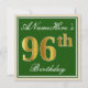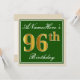 Invitation Elégant, Vert, Faux Gold 96ème anniversaire + Nom