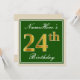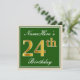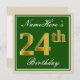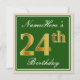 Invitation Elégant, Vert, Faux Or 24ème Anniversaire + Nom