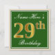 Invitation Elégant, Vert, Faux Or 29ème Anniversaire + Nom