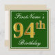 Invitation Elégant, Vert, Faux Or 94ème Anniversaire + Nom