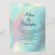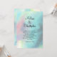 Un faire-part de mariage au design abstrait cool et élégant. Les aquarelles fanées se mélangent pour créer l'illusion d'une image spatiale. Vert avec des touches de violet, jaune et rouge clair se marient avec un peu de points et d'étoiles blancs. Une élégante création artistique.
