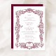 Invitation Élégant Vintage baroque Floral Bourgogne Mariage