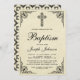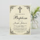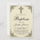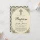 Éblouissez vos invités avec cette invitation Baptême de style vintage avec une bordure noire élégante et décorée de croix contre un arrière - plan parchemin vintage. Ajoutez simplement les détails de votre événement sur ce modèle facile à utiliser pour en faire une invitation unique. Retournez la carte pour révéler un beau motif au dos de la carte.