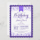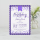 Personnalisez cette invitation formelle, élégante, violet violet et blanc confetti adulte ou ado fête d'anniversaire. Idéal toute l'année pour les fêtes d'anniversaire de printemps, d'été, d'automne ou d'hiver. Design neutre et tendance pour homme ou femme, garçon ou fille. Invitation élégant et classe pour tout âge adulte ou ado important, y compris Sweet 16, 18th, 21th, 30th, 40th, 50th, 60th, 70th, 75th, 80th, 85th, 90th, 95th, 95, 100th anniversaire.