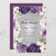 Elégante invitation au baby shower avec de jolies fleurs blanches et violettes peintes à la main et des feuilles verts sauge accentués de parties scintillant dorée. Personnalisé avec votre nom et toutes les informations de votre parti. Contactez-moi pour obtenir de l'aide sur vos personnalisations ou pour demander d'autres produits Zazzle correspondants pour votre douche.