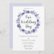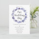 Un cadre fleuri élégant de roses violets d'aquarelle encadre cette invitation de mariage d'hiver chic avec une belle forme circulaire bordée de fleurs violettes et de feuilles botaniques. Cette somptueuse invitation de mariage florale est accentuée d'une belle lavande de retour.