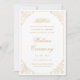 Elégant Faire-part de mariage islamique blanc et or. Fait pour les couples musulmans pour célébrer leur cérémonie de Walima. Il s'agit d'un design de luxe avec un parchemin baroque vintage dans le coin du cadre. Vous pouvez modifier la couleur de la carte et toutes les informations écrites sur la carte. Le type de papier peut également être modifié. Ayesha A. Hussain sur Zazzle.