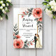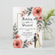 This elegant watercolor floral wedding invitation is perfect for a modern wedding. The romantic design features a sleek watercolor floral frame with a bride and groom illustration and black calligraphy on a white background.